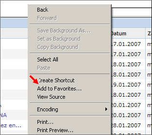 Med priljubljene lahko dodate katerokoli stran iz sistema, npr. pregled „Moje odprte naloge in dogodki“. Lahko jih imamo veliko. To naredite tako, da na želeni strani kliknete na desni gumb miške in izberete Dodaj med priljubljene (Add to Favorites).