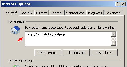 Home page of web browser can be set as Produs IO home page. V Internet explorerju to lahko naredite po sledečem postopku: