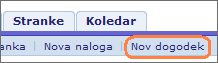 1. Kliknite na zgornjo povezavo Nov dogodek,