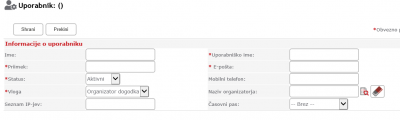 E-pošta: - vnesemo pravilno obliko e-poštnega naslova uporabnika kamor bo prejemal obvestila iz sistema (vključno z geslom za dostop)
