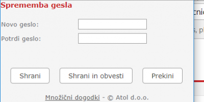 e-pošta: - vnesemo e-poštni naslov kamor želimo da uporabnik prejme geslo za dostop in druga morebitna obvestila.