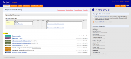 Ko pridete na stran Produs Basecamp-a najprej vidite pregled nad celim projektom oz. če ste dodeljeni na več projektov, vidite pregled nad vsemi projekti, ki se odvijajo.