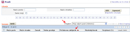 Pregled poslov na poslih, lahko sortirate padajoče po datumu zaključka posla. To je omogočeno v vseh obstoječih pregledih na poslih. Na ta način lahko s pomočjo le enega klika, pregledate vse najbolj aktualne posle.