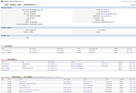Dovolj je, da poznamo ime stranke in preko nje dostopimo do vseh obstoječih zapisov, ki so kakorkoli povezani z njo. To pomeni, da smo vse zapise pravilno pripeli na stranko ali na njene posle. Zabeležene imamo podatke o njihovih zaposlenih, s katerimi smo bili v kontaktu, sestanke, e-pošto, klice, posle, pogodbe… Z enim klikom dostopimo do celotne zgodovine sodelovanja s stranko.