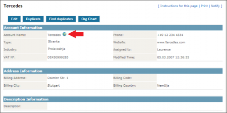 After entering the Account's Name into Produs IT, it is possible to open a map of Account's location by clicking on the „earth“ icon. See the picture below.