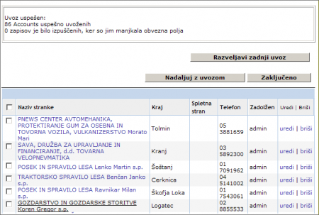 If a need to export the data out of the system appears later on, you can simply do that using the exporting tool. You can read more about exporting in the Izvoz section.