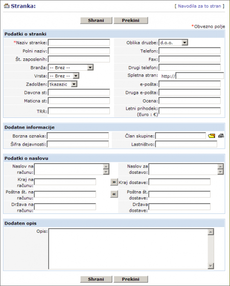 Account name is obligatory information. This field has to be filled up in orded to save the entry. In this field should be entered short name of Account, in field Full name should be entered full name of Account.