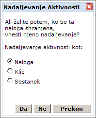 Select the following Activity or click No.