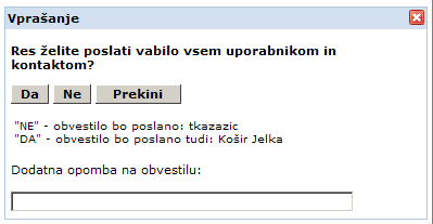 If this field is not ticked off, the notification will be sent to assigned user. If this field is ticked off, the system will ask you, to which participant the invitation should be sent. A dialog box opens: