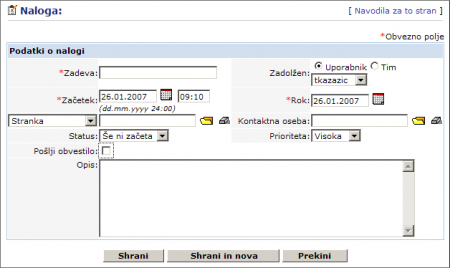 Click New task on entry section to create a new Task. A new window opens (see picture below).